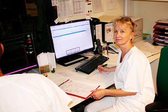 Im Registrierraum- Schwester Regina beim Untersuchungsprotokoll